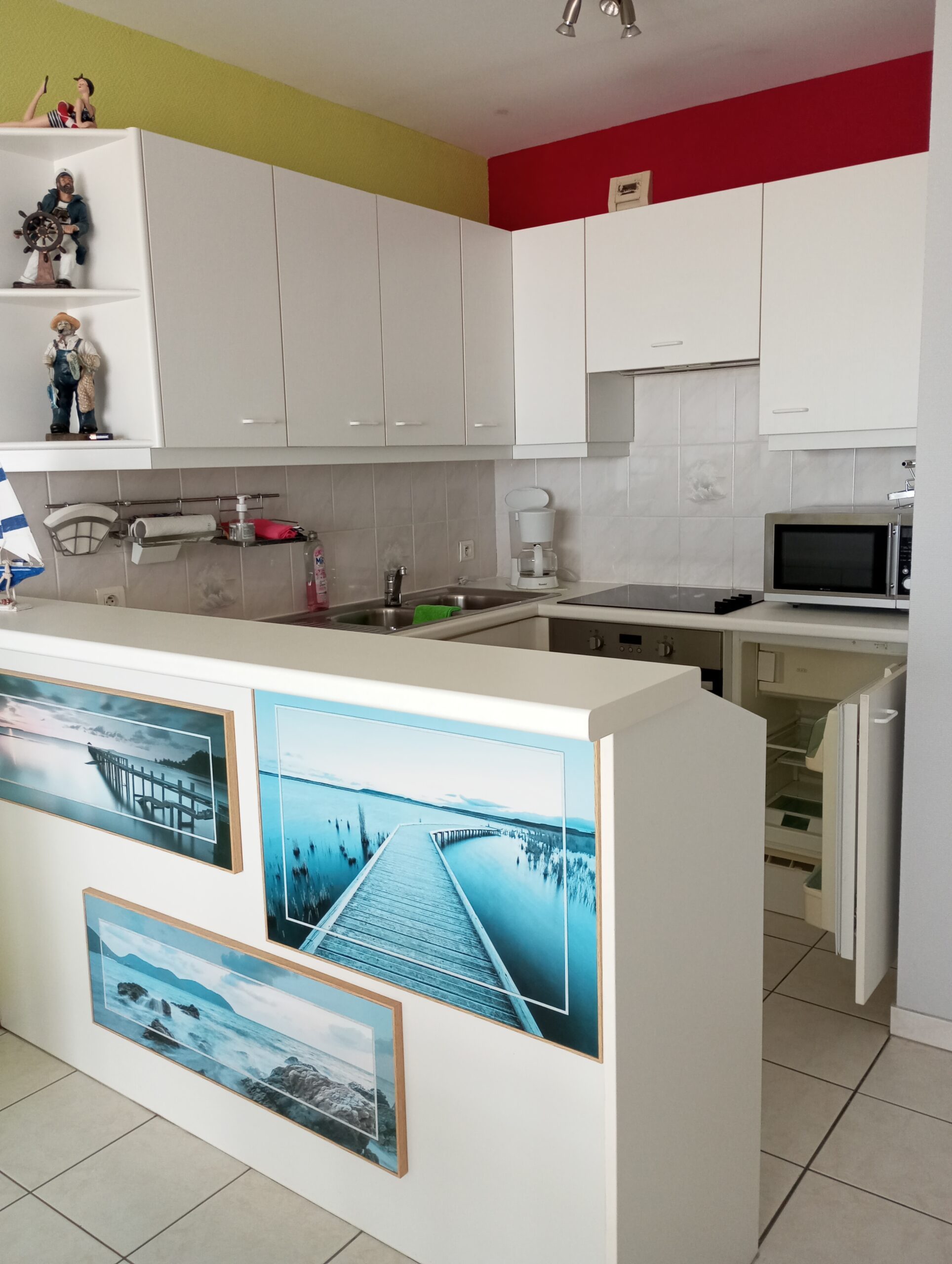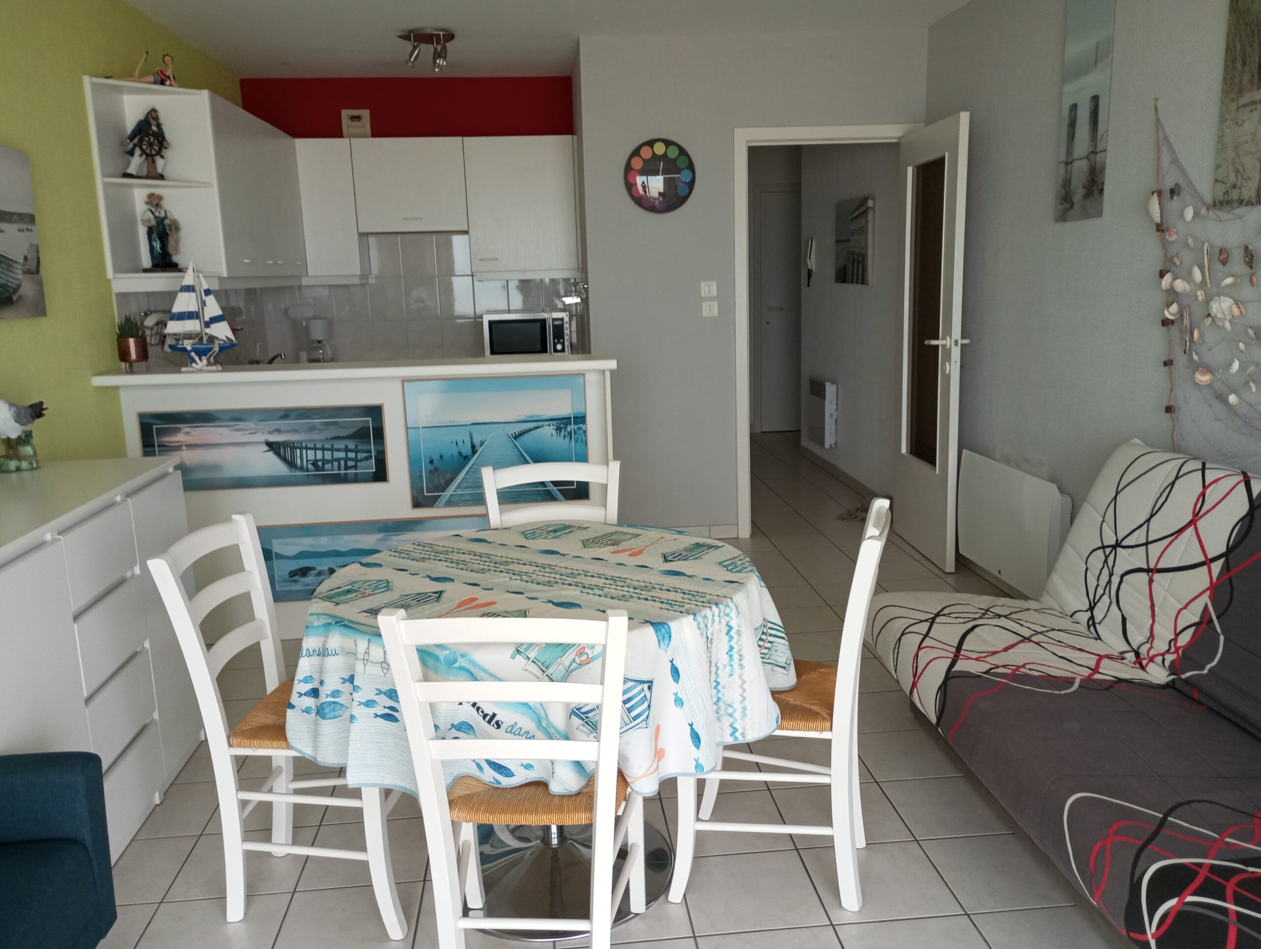 Dans résidence de standing bel appartement offrant: Hall, séjour sur balcon face mer avec coin cuisine équipée, sdb, wc, cellier