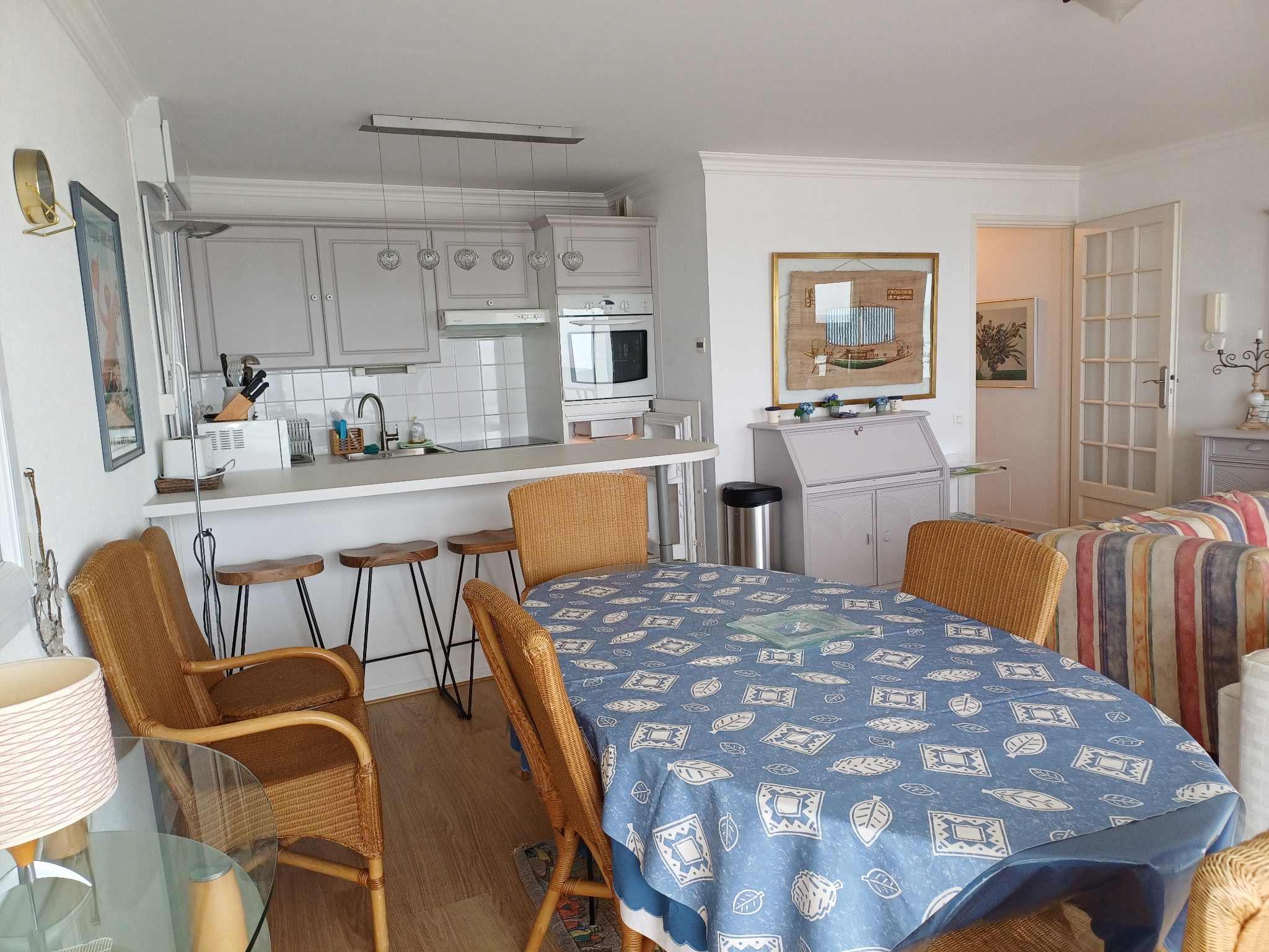 Bel appartement offrant: Hall, salon séjour sur grande terrasse face mer avec coin cuisine équipée, sdb (douche),wc