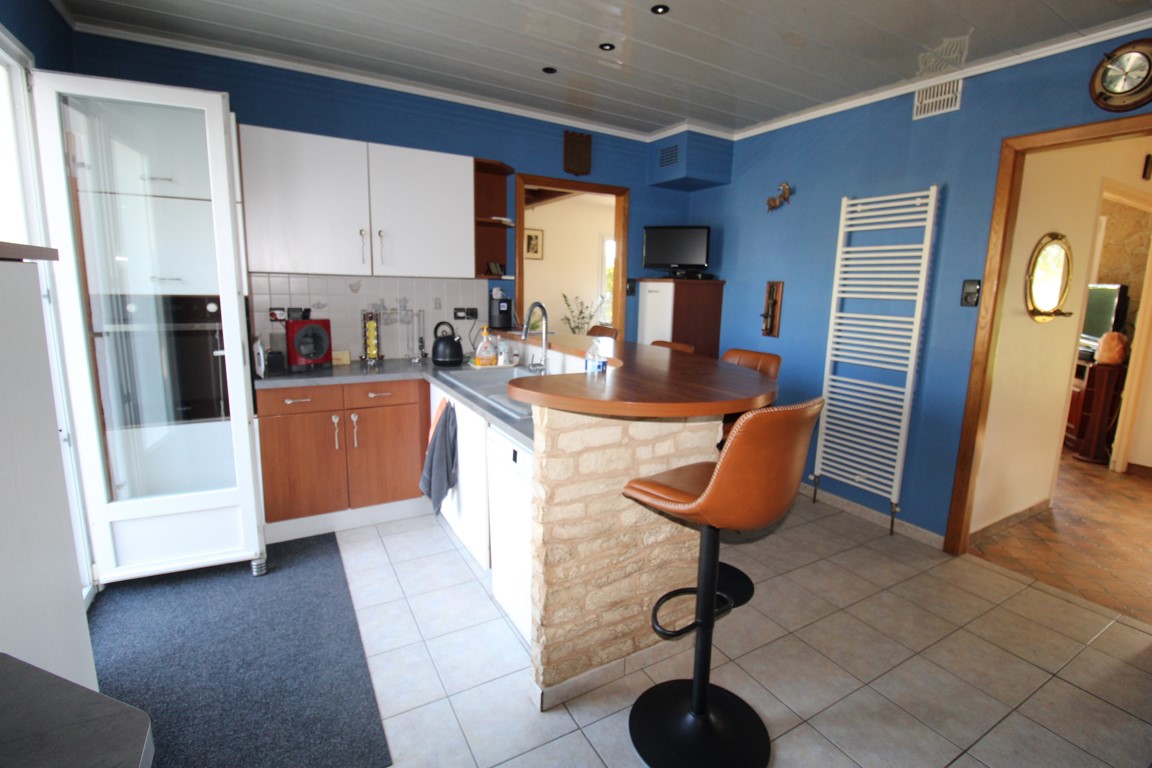 cuisine équipée, salle de bains (baignoire et douche), wc, 4 chambres + 1 bureau.
