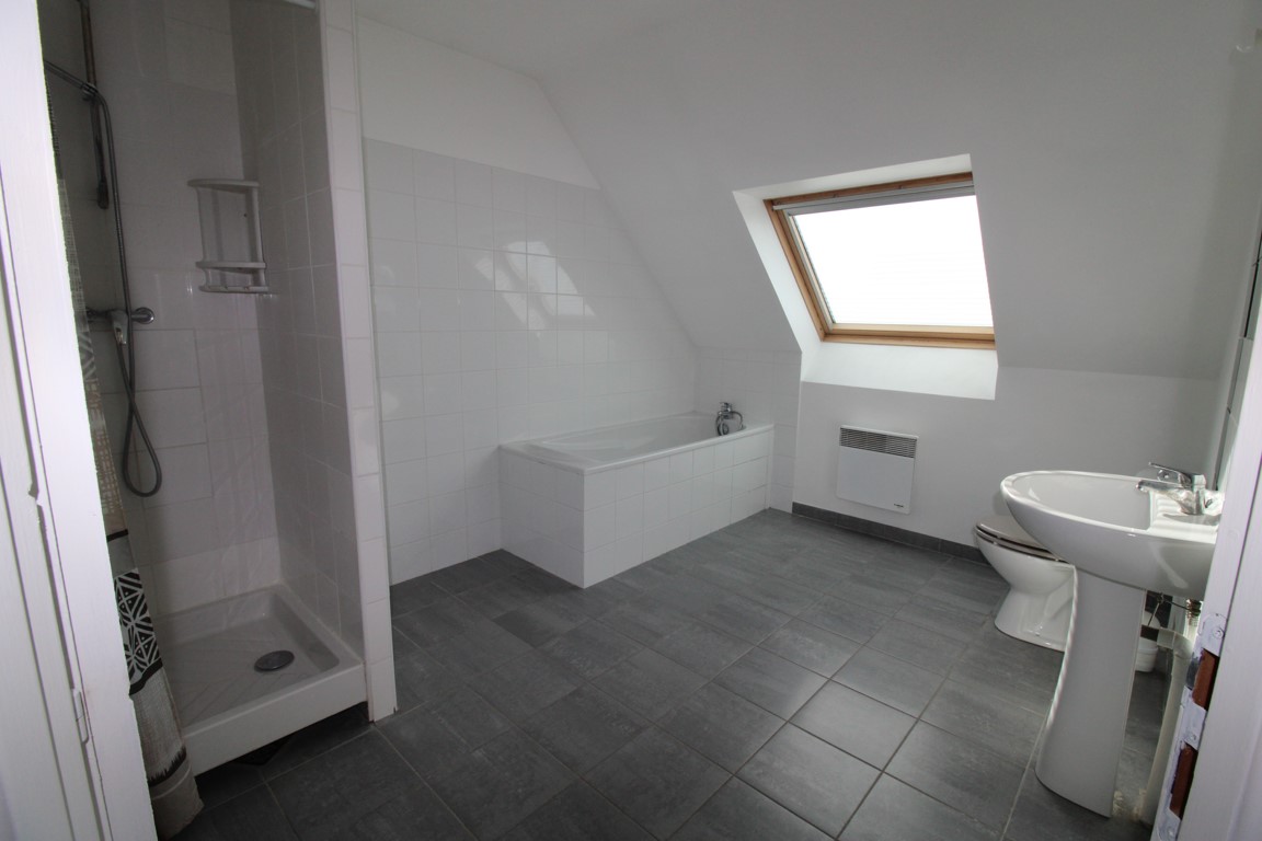 Etage: 3 belles chambres, grand dressing/bureau, salle de bains (baignoire et douche), wc.