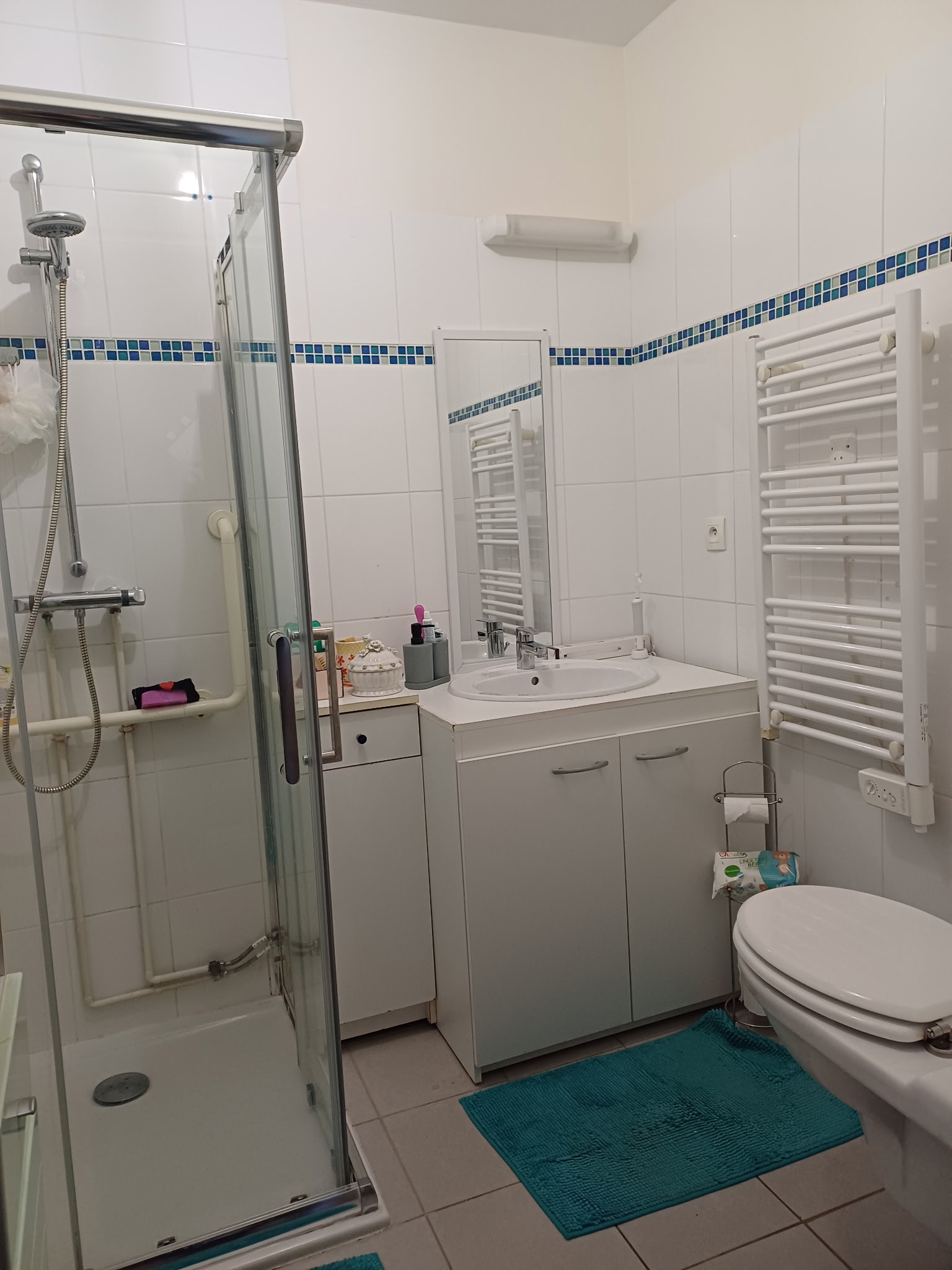 Séjour avec cuisine équipée, cellier/buanderie, salle de bains (douche, wc), 1 chambre